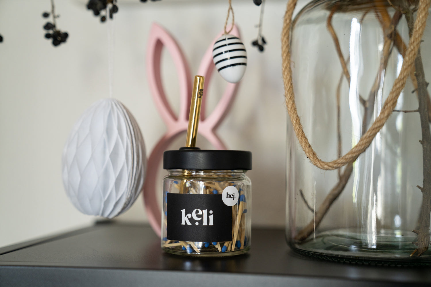 Stylisches Vorratsglas mit Streichhölzern und Metalldeckel